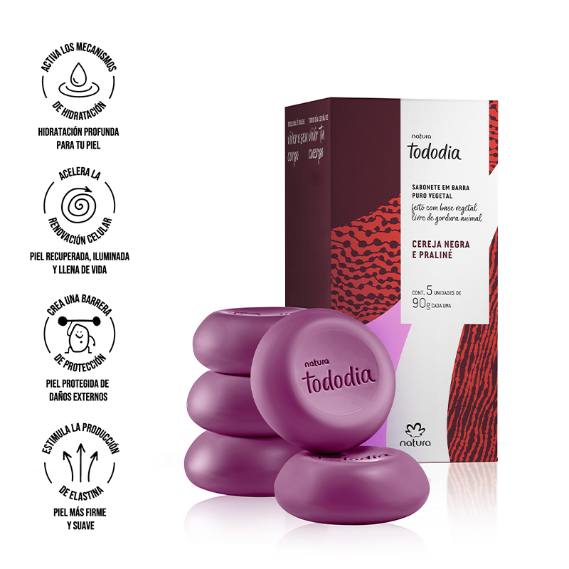 Tododia Jabones en barra puro vegetal cereza negra y almendras dulces Caja con 5 jabones de 90 g c/u